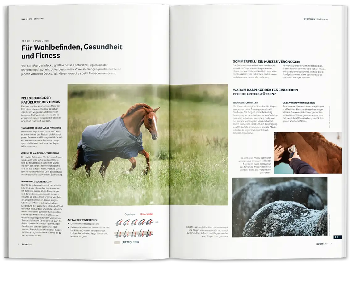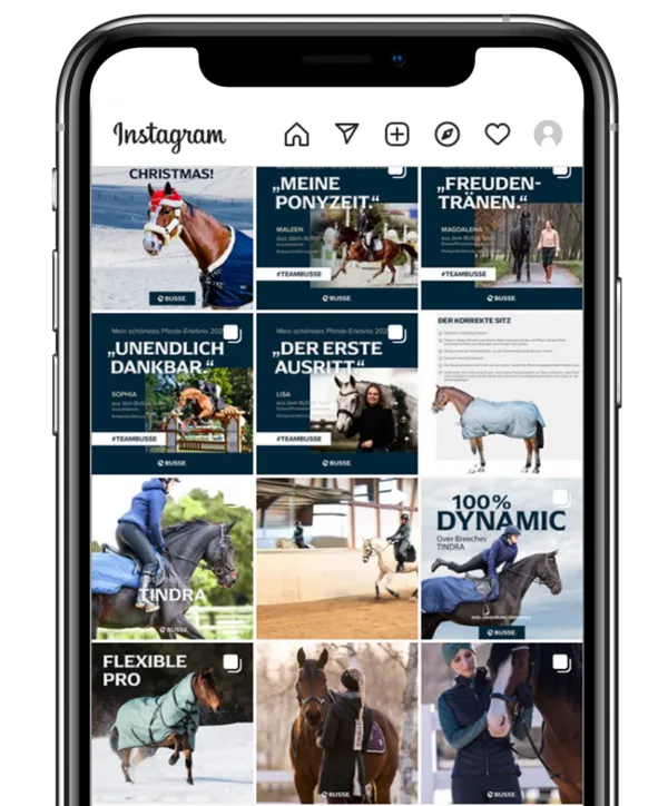 Im Jahr 1973 gegründet, entwickelt, produziert und vertreibt das Unternehmen BUSSE ausgezeichnete Reitsportartikel für Pferd und Reiter*in. Innovative Reitsportprodukte, die nicht nur durch gutes Design begeistern, sondern vielmehr das ausbalancierte Zusammenspiel von Mensch und Tier in den Mittelpunkt rücken – mit dem Ziel, die Partnerschaft zwischen Pferd und Reiter*in trotz zahlreicher Gegensätze noch einfacher, unbeschwerter und erfolgreicher zu gestalten.