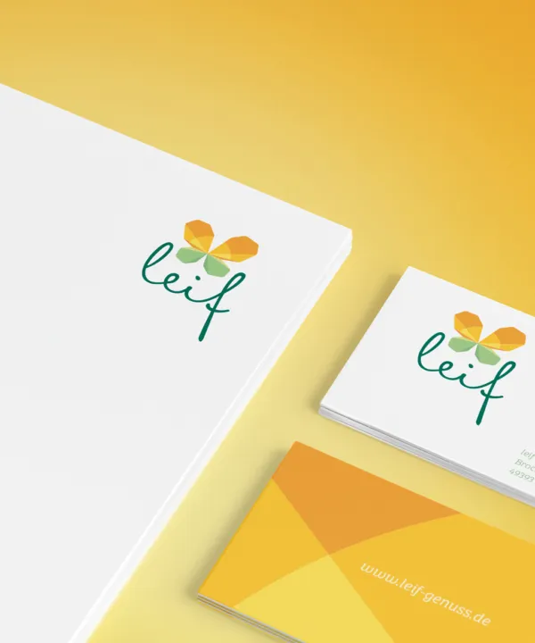 So entwickelte unser Designteam mit großer Freude den die Markenpositionierung transportierenden Markennamen leif und das dazu passende Brandingkonzept.